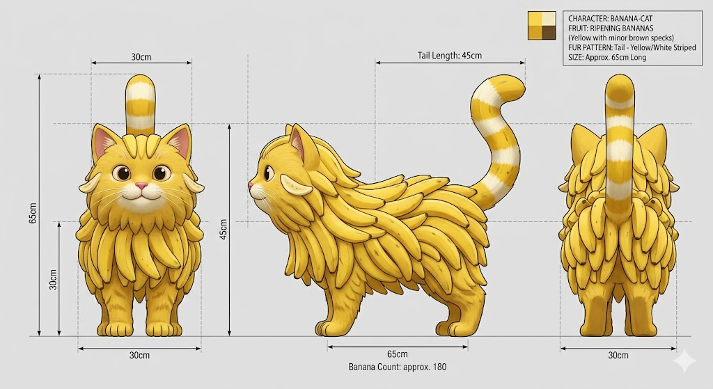 設計図は言葉だけでなく、絵で渡すのが効果的です。たとえば、まずNanoBananaでイメージ画像を作成し、その画像をもとに三面図の作成を依頼することで、キャラクターの形状や特徴を安定させやすくなります。